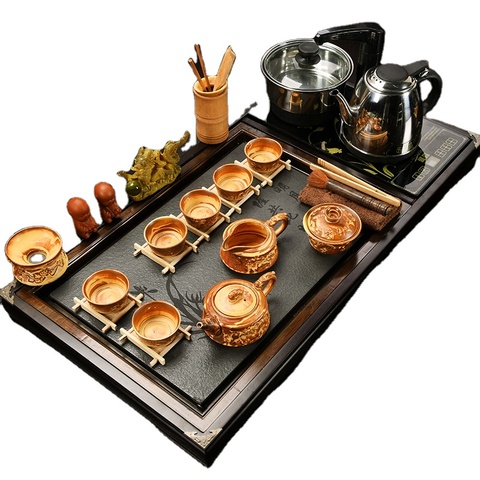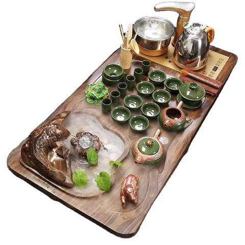 中国のカンフーティーセット木製ティートレイ全自動ティーケトルティーカップガイワン商業ギフト